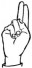 На ћирилици написано ПАУН ПОПАДИЋ састоји се из 11 слова [?]. Исписано ћириличном једноручном азбуком за глувонеме: